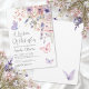 The design features a delicate arrangement of watercolor wildflowers and greenery, accented by pink and purple butterflies fluttering gracefully across the front. The color palette includes soft blush pinks, dusty rose, lilac, lavender, violet, and fresh greens, creating a dreamy and romantic aesthetic.