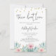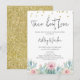 Invitation à la fête de couples d'amour de calligraphie moderne avec un arrangement de cactus à fleurs roses, des points dorés faux et un dos avec paillettes dorées faux.