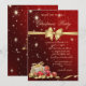 Une invitation élégante pour une fête de vacances présentant un arbre de Noël en or, des boules et des cadeaux sur fond rouge. Ces belles invitations de Noël sont parfaites pour les invitations au dîner de Noël, les invitations à l'échange de cadeaux de vacances, les collectes de fonds de Noël, les invitations au bal de vacances et d'autres événements organisés au cours du mois de décembre. Il suffit d'utiliser les champs du modèle pour ajouter vos propres informations sur l'événement.