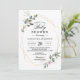 Une invitation de plein air à motif eucalyptus est une invitation magnifiquement conçue qui convient parfaitement à tout événement ou rassemblement en plein air. L'invitation présente généralement un design élégant et rustique, avec des feuilles d'eucalyptus vertes luxuriantes comme élément central. Les feuilles servent souvent de bordure ou de cadre naturel pour le texte et les graphiques de l'invitation, créant un aspect sophistiqué et invitant.