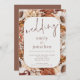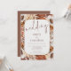 Cadre de fleurs en terre cuite rustique avec code QR pour mariage. Des fleurs élégantes, des baies et des herbes dans des tons de terre cuite brune et de crème automnaux, sont derrière un cadre crème aux coins arrondis, à l'intérieur duquel se trouve votre texte. Le mot "mariage" est écrit dans une police script funky. Personnalisez facilement le reste du texte avec vos propres détails. Ajoutez votre code QR vers votre site web de mariage au verso, ce qui en fait une option pratique pour que vos invités répondent et voient tous les détails sans avoir besoin de cartes de réponse et de détails séparées. Votre code QR sera généré automatiquement pour mettre à jour l'exemple de code dans le design, lorsque vous changerez simplement l'URL d'exemple dans le modèle avec l'URL de votre propre site web de mariage.