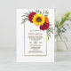 Invitez vos amis et vos proches avec cette élégante invitation de réception de mariage au cadre doré floral tournesol et rose burgundy qui a été conçue pour les couples qui ont choisi d'échanger leurs vœux lors d'une cérémonie privée et de célébrer la joie de leur mariage récent dans un lieu de réception de leur choix avec leurs amis et leurs proches.