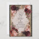 Invitation Cadre Or antique avec fleurs rouges profondes