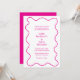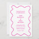 Faire-part de mariage contemporaine avec un design amusant avec les détails de votre événement dans une mise en page simple à l'intérieur d'un cadre de poignet dessiné à la main. La palette de couleurs est magenta / fuchsia / rose chaud sur un arrière - plan blanc et peut être changée dans l'outil d'édition de conception. La forme organique du cadre ondulé et la couleur audacieuse et vive de cette invitation en font un choix idéal pour un mariage moderne.