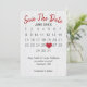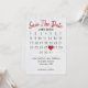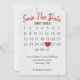 "Calendrier sauvegarde de la date" avec cœur rouge sur fond de bois de grange blanchi rustique pour un mariage imminent.
