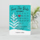 Calendrier "Save the Date" avec cœur rouge sur fond aqua avec flocons de neige et arbres pour un mariage imminent.