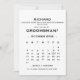 Cette carte Groomsman propose un calendrier modifiable et une police de script exquise. Modifiez le mois et remplissez les dates pour chaque jour du mois.Dans la section de personnalisation, cliquez sur le bouton bleu "modifier à l'aide de l'outil de conception" pour déplacer le coeur.