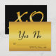 Un "XO" dramatique décore l'arrière de ce RSVP noir et or élégant. Ce style est encore amélioré avec une simple réponse Oui/Non à encercler. Faites défiler vers le bas pour voir les articles coordonnés dans cette collection.