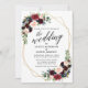 Moderne Élégante calligraphie, Aquarelle Bourgogne Marsala Bleu Floral, Or Faire-part de mariage de cadre géométrique - Bourgogne Retour