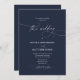 Invitation Calligraphie Elegant QR Code Marine Mariage bleu
