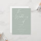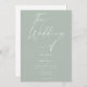 Invitations amis et famille à votre mariage avec cet élégant design de faire-part de mariage calligraphie. Cette carte faire-part de mariage en vert sage clair présente un script moderne sur le devant de la carte et un arrière - plan sage clair. Toutes les couleurs et le texte de ce modèle faire-part de mariage moderne peuvent être customisés par vous pour correspondre à votre thème mariage et votre style personnel. Utilisez simplement l'outil de conception pour changer la couleur des polices et des arrière - plans. Correspondance Enregistrer les cartes Date, les cartes RSVP et plus dans ce style sont disponibles dans ma boutique.
