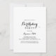 Cette calligraphie moderne invitation fête d'anniversaire est parfait pour un événement rustique. Le design sobre et élégant présente une typographie de script classique et sophistiquée en noir et blanc.