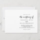 Cette calligraphie moderne et horizontale faire-part de mariage est parfaite pour un mariage rustique. Le design sobre et élégant présente une typographie de script classique et sophistiquée en noir et blanc.