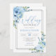 Calligraphie moderne bleu floral argent parties scintillant cadre géométrique wedding shower invitation, Contactez-moi pour les articles correspondants ou pour la personnalisation, Roses blush ©