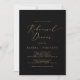 Cette délicate calligraphie dorée invitation à la répétition noire est parfaite pour une répétition mariage moderne. Le design minimaliste romantique présente une belle et élégante typographie de champagne jaune doré sur un arrière - plan noir au look épuré et simple.