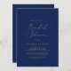 Cette délicate calligraphie or marine invitation à la douche nuptiale est parfait pour un wedding shower moderne. Le design minimaliste romantique présente une belle et élégante typographie de champagne jaune doré sur un arrière - plan bleu marine au look épuré et simple.