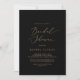 Cette délicate calligraphie or noir invitation à la douche nuptiale est parfaite pour un wedding shower moderne. Le design minimaliste romantique présente une belle et élégante typographie de champagne jaune doré sur un arrière - plan noir au look épuré et simple.