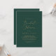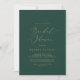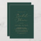 Cette délicate calligraphie or vert invitation à la douche nuptiale est parfaite pour un wedding shower moderne. Le design minimaliste romantique présente une belle et élégante typographie de champagne jaune doré sur un arrière - plan vert émeraude à l'allure simple et épurée.