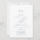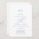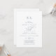 Cette invitation de mariage avec monogramme bleu poussiéreux et calligraphie romantique est parfaite pour un mariage simple. Le design classique moderne présente des volutes fantaisistes et des fioritures fantaisistes avec une typographie élégante à la main.
