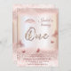 Rose or glittery bokeh tiara butterflies calligraphie 1er anniversaire design.
