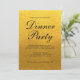 Invitation simple et chic pour dîner de fête avec une calligraphie manuscrite élégante et stylisée de couleur noir sur un fond doré et une typographie moderne. Ajoutez simplement les détails de votre dîner. Conçu exclusivement pour vous par Happy Dolphin Studio. Si vous avez besoin d'aide ou de produits assortis, n'hésitez pas à nous contacter via notre chat en magasin !