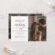 Cette belle et moderne CALLIGRAPHIE TYPOGRAPHIE 2 Photo Wedding Save the Date Invitation comprend un script de calligraphie noir et blanc et moderne tout casquette sans serif design d'invitation de police sur le devant, avec votre photo d'orientation verticale / portrait à droite. L'arrière de l'invitation est muni de votre photo fiançailles horizontale à fond de sang. Un bel invitation !
