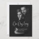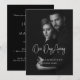 Cette simple invitation à la répétition en noir et blanc présente une calligraphie élégante qui dit "Un jour de distance". Vous pouvez la customiser en ajoutant une photo du couple et leurs noms pour une invitation personnalisée. Il suffit de cliquer sur "Personnaliser ce design", d'entrer la photo et les noms, et Zazzle prendra soin du reste.