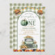 Automne Citrouille Automne 1er Anniversaire Camion Vert En vichy Chaîne Lumière Florale Invitation, Editable Automne Garçon Notre Petit Citrouille Premier Anniversaire invitation, ZB1