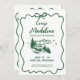 Célébrez la future mariée avec cette invitation à la fête de bachelorette du camp rustique avec un cadre vert ondulé et élégant dessiné à la main et des détails d'arc chic. L'avant donne le ton avec son design minimaliste et tendance, tandis que l'arrière comprend un plan d'itinéraire assorti pour que les clients puissent s'organiser pour les festivités du week-end. Idéal pour les épouses qui planifient une escapade cabine, un voyage émerveillant ou une retraite boisée, cette invitation allie charme rustique moderne et détails pratiques, le tout dans une carte magnifiquement conçue.