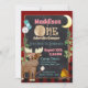 Un adorable camping, invitation d'anniversaire campeur rustique avec thème plaid de buffle rouge et noir et design de tableau noir. Charme Un campeur, camping, extérieur thème anniversaire invitation pour le premier anniversaire du bébé ou changer le libellé pour tout âge ou occasion. Joli orignal avec un feu de camp dans les bois. Un sac à dos pour randonneurs et un guimauve sur un bâton décorent également cette joyeuse invitation à la fête d'anniversaire de camping.