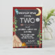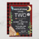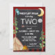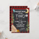 Une joyeuse invitation d'anniversaire de camping à l'extérieur pour n'importe quel âge. Ce camping-car, invitation d'anniversaire de camping rustique avec thème plaid de buffle rouge et noir et design de tableau noir. Charme Un camping, camping, extérieur thème anniversaire invitation pour le deuxième anniversaire de l'enfant ou changer le libellé pour tout âge ou occasion. Tente primitive avec un feu de camp dans les bois et flèche mignonne pour séparer le libellé. Un sac à dos et boussole de randonneurs décorent également cette joyeuse invitation à la fête d'anniversaire de camping.