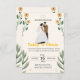 Celebrate love with this sweet and stylish wedding invitation featuring an illustrated bride and groom framed by delicate floral and leaf accents. The warm, earthy tones combined with playful typography create a charming and modern vibe—perfect for couples planning a relaxed, garden, or family-oriented wedding.