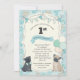 Carlin chien chiot invitation à la fête d'anniversaire sur le thème pastel aqua bleu couleur et salle pour 2 photos sur le dos.