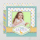 Le lapin doux avec les boutons 3D-look et les équilibres au-dessus de la copie de point et Pâques étiquettent la carte d'invitation de photo.