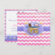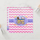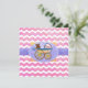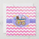 Carré Baby shower rose Chevron Invitation par ITD Colours Galore présente notre motif en zag rose et blanc couleur bonbon avec notre texture signature dans le dos avec une bande violette texturée et pièce centrale décorative avec un mignon bébé pram vintage tenant un ours en peluche. Sur le dos, customisez l'information pour votre baby shower sur un carré blanc dans le motif coloré zigzag avec un pram et une bande violette avec un motif de petits jouets mignons courant le long du fond.