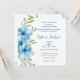 Un accent floral à l'aquarelle bleue fantaisiste et des polices visuellement agréables font de cette invitation de mariage carrée élégante, évoquant l'adage "Quelque chose d'ancien, quelque chose de nouveau, quelque chose d'emprunté, et quelque chose de bleu". Surtout formel dans le style, avec des éléments plus décontractés tissés dedans, ce design mélange sans heurts les esthétiques vintage et modernes.