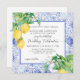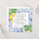 Invitation Carrelage bleu blanc Citron Floral Citrus Feuillag