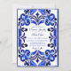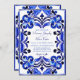 Blue Majolica Mexicaine Talavera Espagnol Français Méditerranéen tuiles mariage tous en un éditable modèle invitations instantanée téléchargement numérique. Carreaux d'aquarelle modernes couleurs bleues. Le tout dans une seule invitation avec les détails mariage et rsvp à l'arrière.