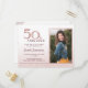 Ce design de parties scintillant en or 50 et Fabulous rose est parfait pour la dame de votre vie qui a cinquante ans. Le design élégant et moderne comprend une photo et un texte personnalisable pour vous aider à célébrer un 50ème anniversaire dans le style. Photographie © Storytree Studios, Stanford, CA
