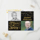 Ajoutez deux photos (une jeune et une actuelle) de l'anniversaire honoré à cette carte postale d'invitation de fête noire et or annonçant qu'ils ont 50 ans en préparation !