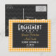Belle invitation du Parti Engagement avec le cool Amber Orange En vichy motif et l'arrière - plan chevron moderne gris foncé.