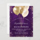 Invitation Carte Postale Ballons de parties scintillant en or violet Quince