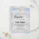Un baptême moderne et élégant, célébrant un bébé garçon. Arrière - plan à l'aspect argent faux décoré de faux parties scintillant bleus brillants et d'une croix dorée. Personnalisez et ajoutez un nom et des détails du parti. Lettres de couleur noire.