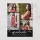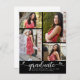 Invitation Carte Postale Black White Graduation 4 Photo Modern Script Heart
