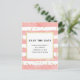 Enregistrez la carte postale date avec un élégant motif. Dotée de rayures horizontales de couleur rose vif et de parties scintillant de confettis en faux or éparpillés autour.