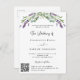 Un arrière - plan blanc décoré de fleurs de lavande et de verdure d'eucalyptus. Personnalisez et vos noms et détails, ajoutez votre URL de site mariage au code QR pour plus de détails et/ou RSVP.