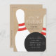 Une invitation à la fête d'anniversaire moderne et neutre pour les femmes avec un bowling et 2 épingles de bowling. Des amis Invitations pour célébrer et jouer à un jeu amusant de bowling pour célébrer l'anniversaire de votre enfant. Le support motif de coordination peut être supprimé pour laisser de la place à d'autres informations sur les parties comme les directions.