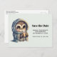 Enregistrez la carte postale dater avec une jolie illustration d'un chouette en robe d'hiver et d'un foulard tenant un café chaud.