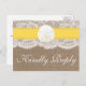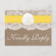La collection de mariage de plage de sable jaune dollar est un design étonnant avec un bel arrière - plan rustique effet burlap avec une coupe romantique vintage effet dentelle blanche finie avec un étonnant dollar de sable et ruban jaune. Ces cartes postales RSVP peuvent être personnalisées pour votre occasion spéciale et feraient les cartes d'insertion parfaites pour un mariage, douche nuptiale, fête de fiançailles, fête d'anniversaire et bien plus encore. *Veuillez noter que Zazzle ne vend que des cartes postales imprimées afin que ces cartes postales n'aient pas de matériel réel de burlap, dentelle, dollar de sable ou ruban.