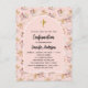 Un cadre en arc sur un motif de pampas herbe et fleurs roses et une croix dorée. Personnalisez et ajoutez un nom et des détails.